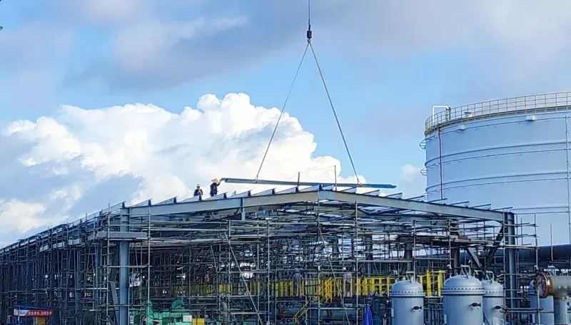 This project involves the steel structure roofing works for the finished petroleum pump shelter and oil metering station pump shelter at the Beihai Finished Petroleum Reserve Base. The structure adopts a portal steel frame design, with both design and construction strictly following national and industry standards. The total span is 18m, length 90m, column spacing 6m, eave height 6m, and seismic fortification intensity of 6 degrees. Considering the influence of near-field earthquakes, the structural seismic grade is set to Level IV.