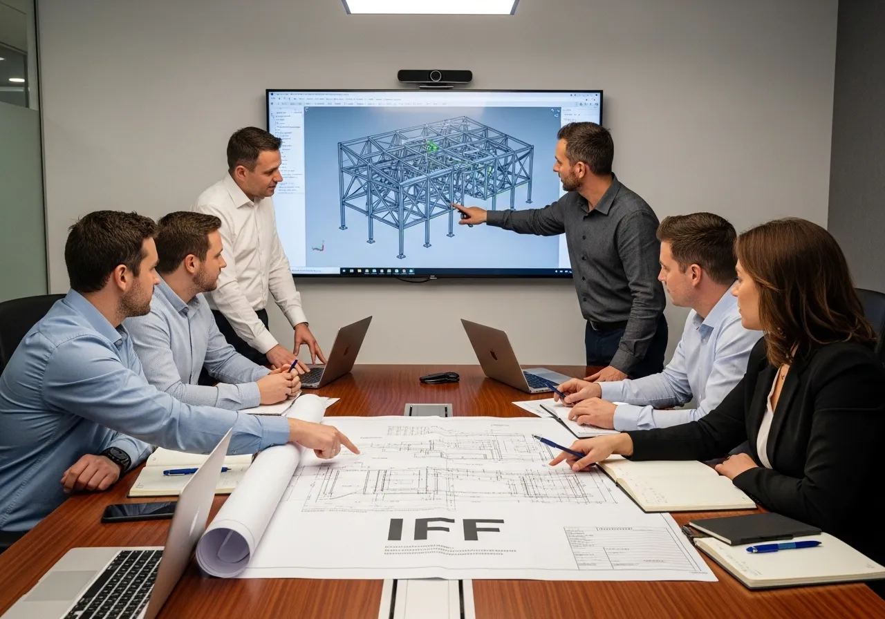 Gate IFF: tidak ada pembelian atau shop drawing tanpa paket IFF lengkap (dimensi, detail las, spesifikasi material, catatan fabrikasi).