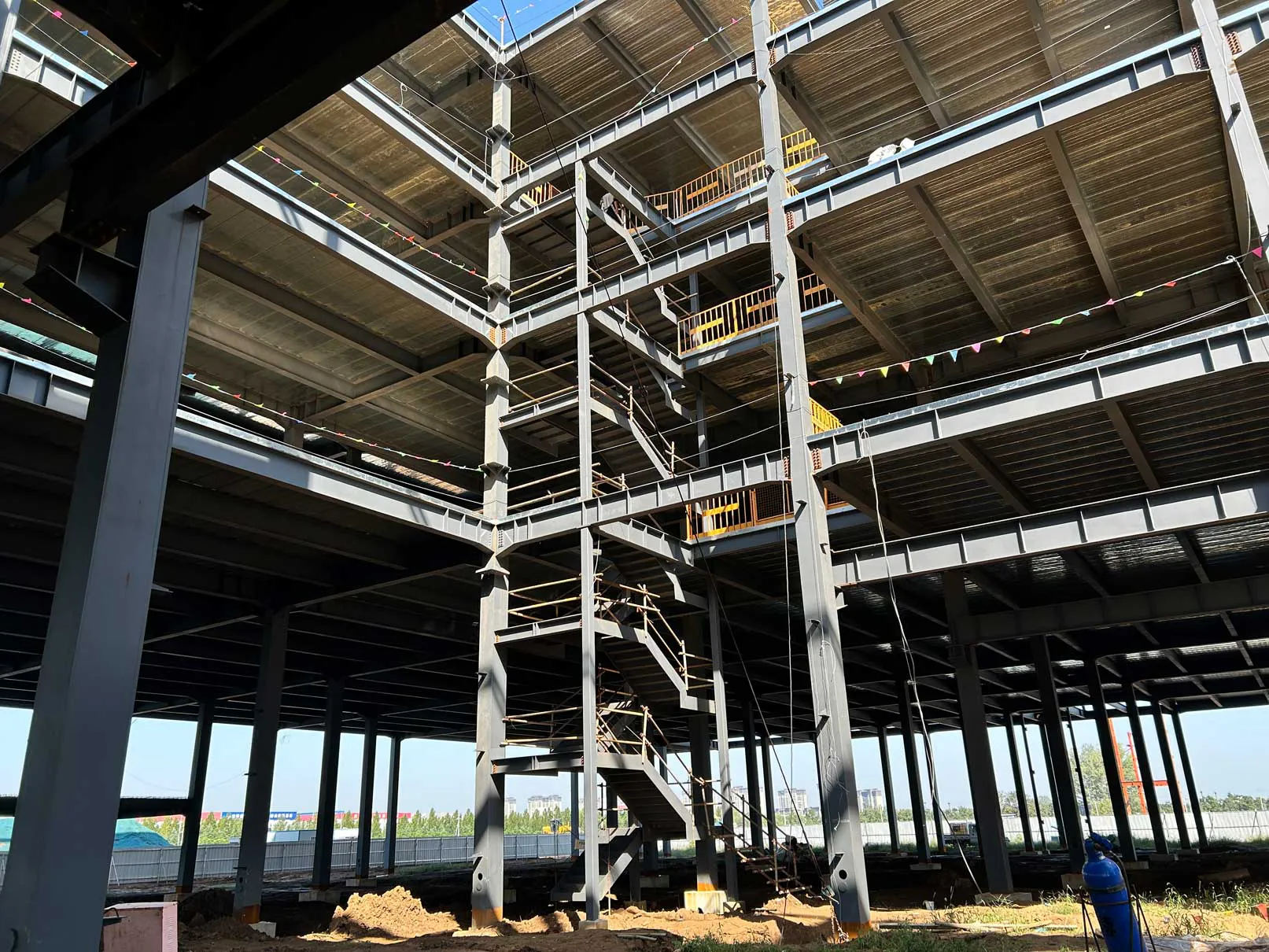 Struktur baja utama untuk proyek ini diproduksi di pabrik kami menggunakan jalur produksi otomatis yang canggih. Proses ini mencakup pemotongan CNC, perakitan balok H, pengelasan busur otomatis, dan pembersihan permukaan dengan mesin tembak pasir hingga tingkat Sa2.5. Komponen baja kemudian dipindahkan ke lokasi proyek untuk dipasang oleh tim kami yang terlatih.